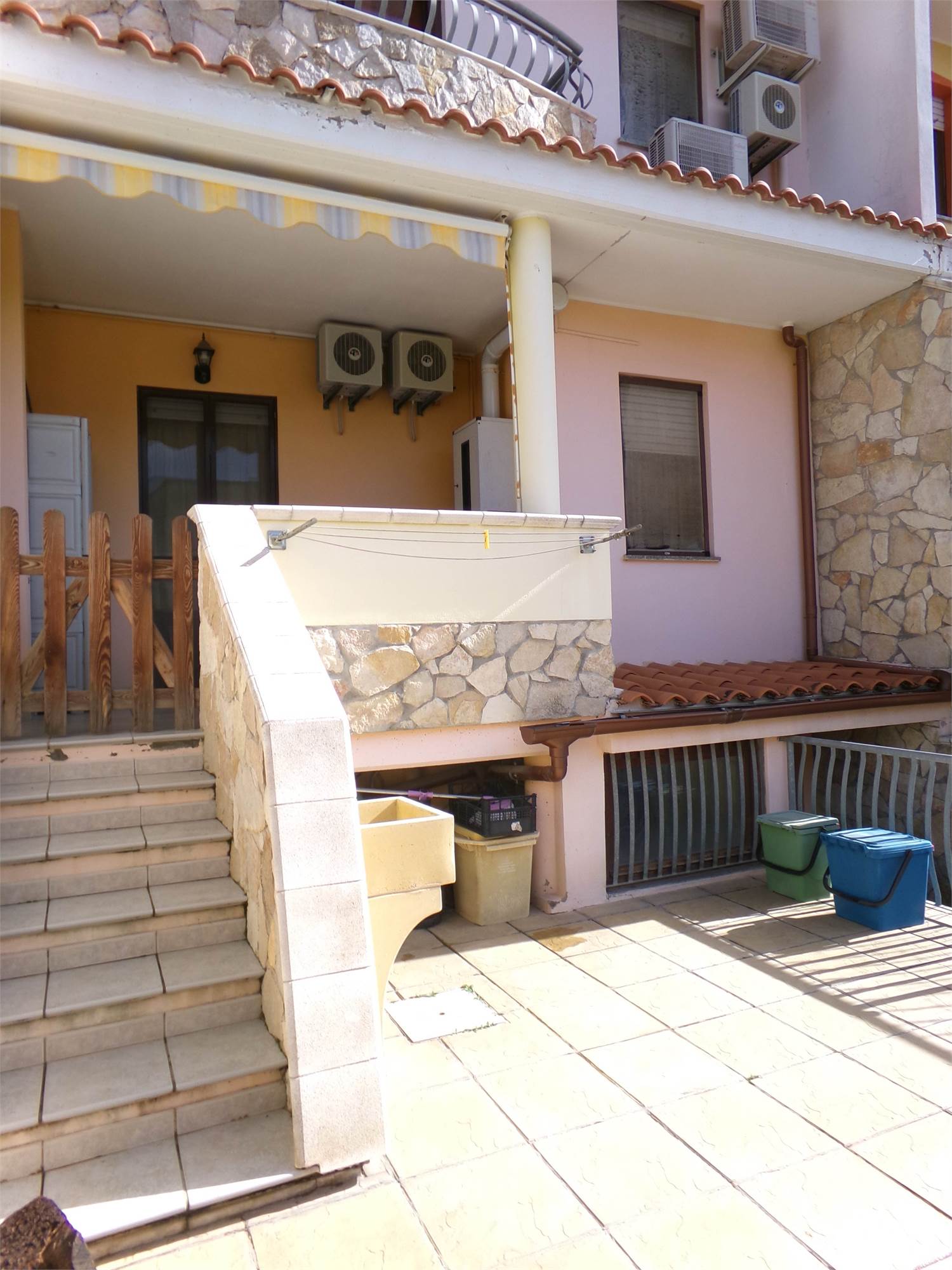 Decimomannu, Via Delle Aie, in contesto residenziale ben servito, luminosa villa a schiera tipologia quadrivano con doppio ingresso composta da; Sala, Cucina, 3 camere, 2 bagni, taverna, 2 verande, balcone, 2 cortili carrai